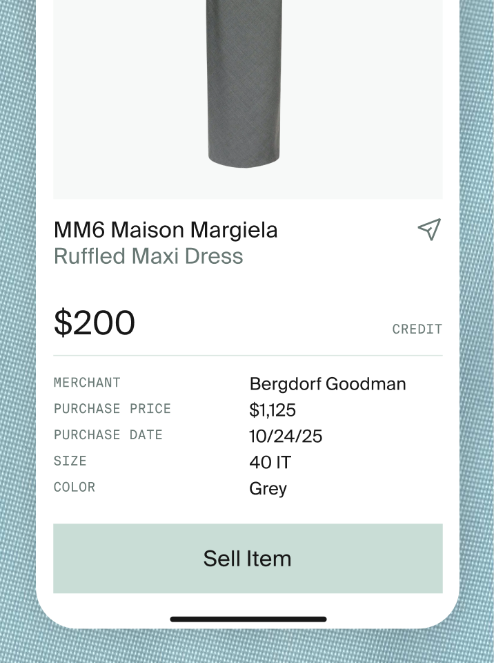 A. Shop with Croissant to see Buybacks. Tap “Sell” in the app, send us your item, and get paid in store credit once it arrives.